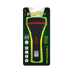 The GoGreen Power® 12 LED Rechargeable flashlight uses brightest white LED technology and provides you with an excellent light source without ever replacing a bulb. The flashlight feature a convenient 3-way button, allowing you to switch between 12 LEDS, a night light LED and a red / blue safety light. The built-in retractable AC adapter means you can charge your flashlight without additional parts or cables. Simply plug the flashlight into any electrical outlet, and you'll be ready to go in no-time.